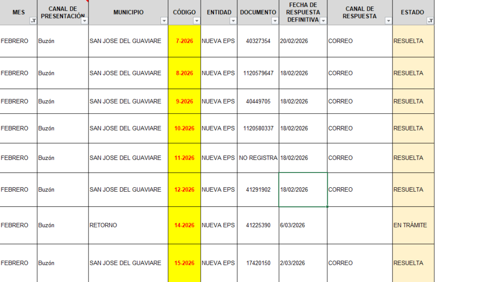 Una vez radicada, se inicia el trámite con el área correspondiente. La respuesta definitiva se entregará al correo electrónico registrado en los siguientes plazos máximos: